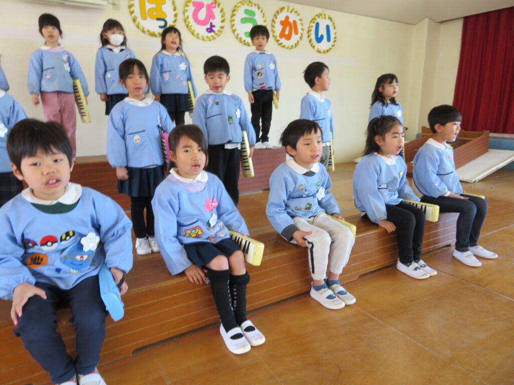 合同発表会では、音楽発表会のうたや楽器演奏を、他学年のお友だちに発表しました!!