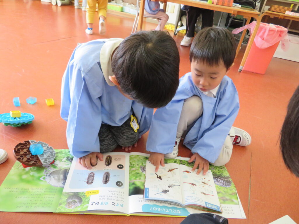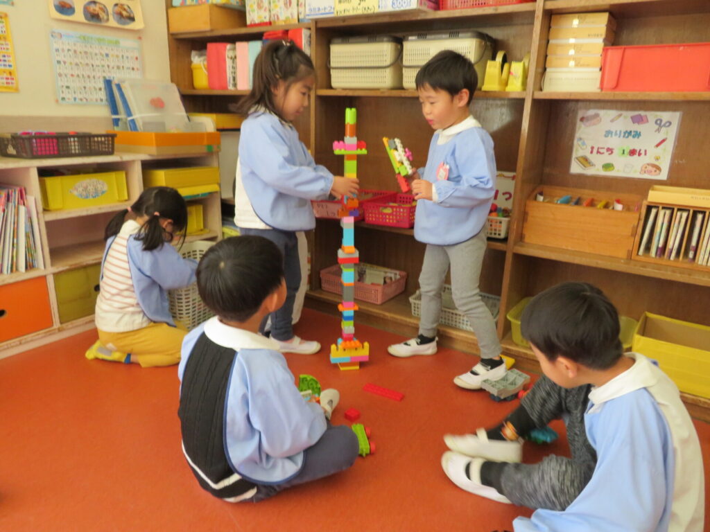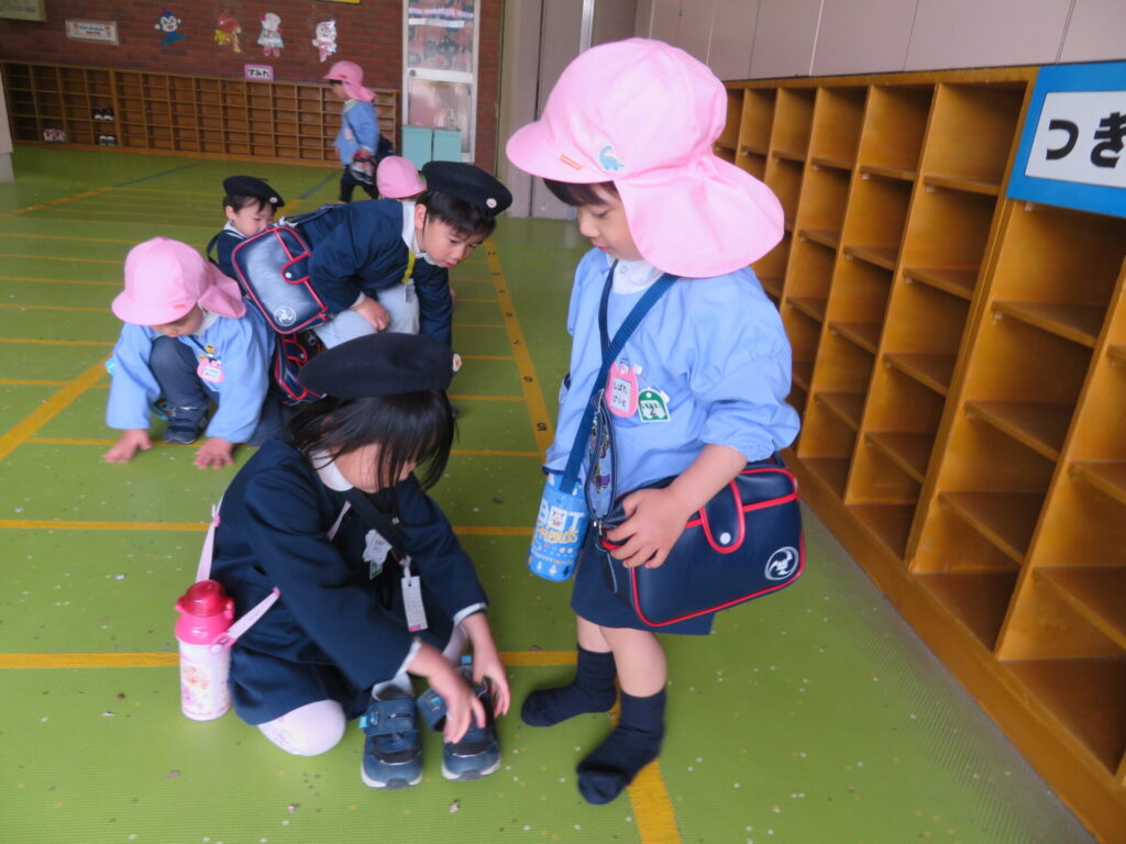お兄さん、お姉さんが小さい組さんのお世話を頑張っています。