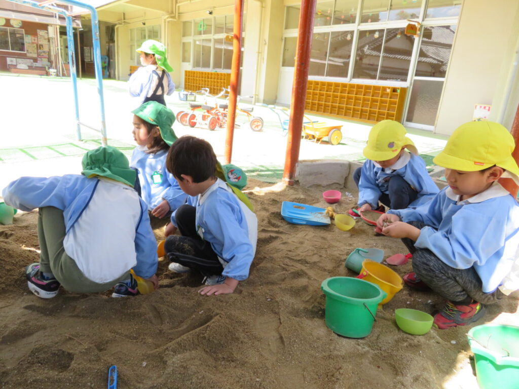 泥や水の感触を楽しみながら遊んでいます☺