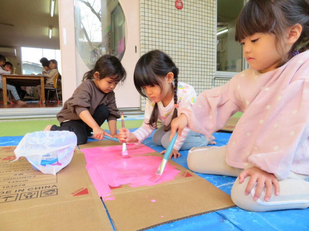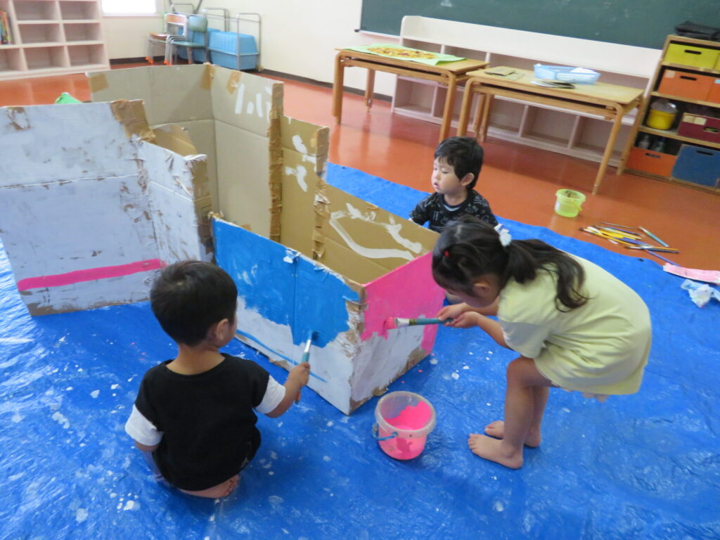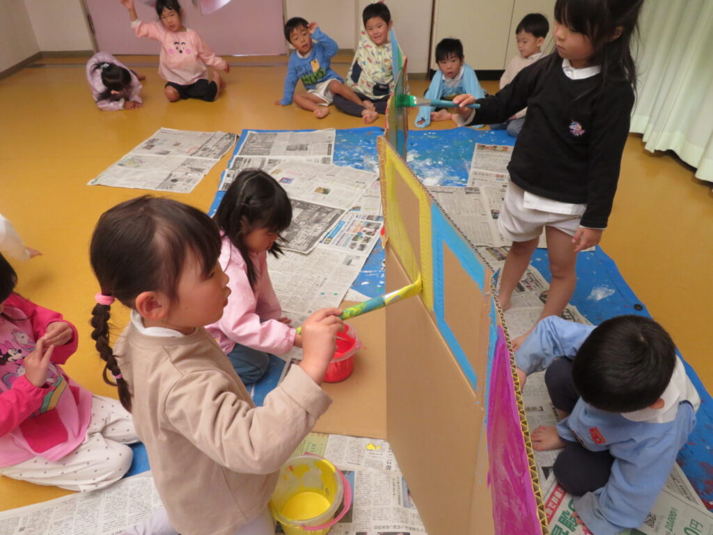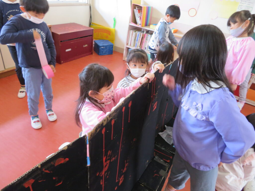 作品展に向け、制作が始まっています。クラスのお友だちみんなで話し合いながら作っていきます。