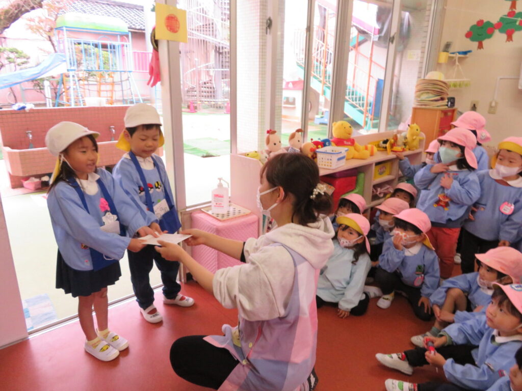 ゆうびんやさん(年長組)が届けてくれます♪