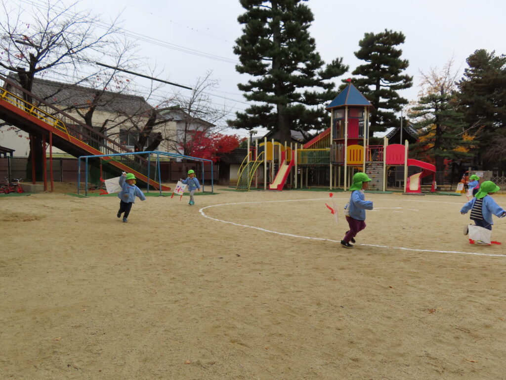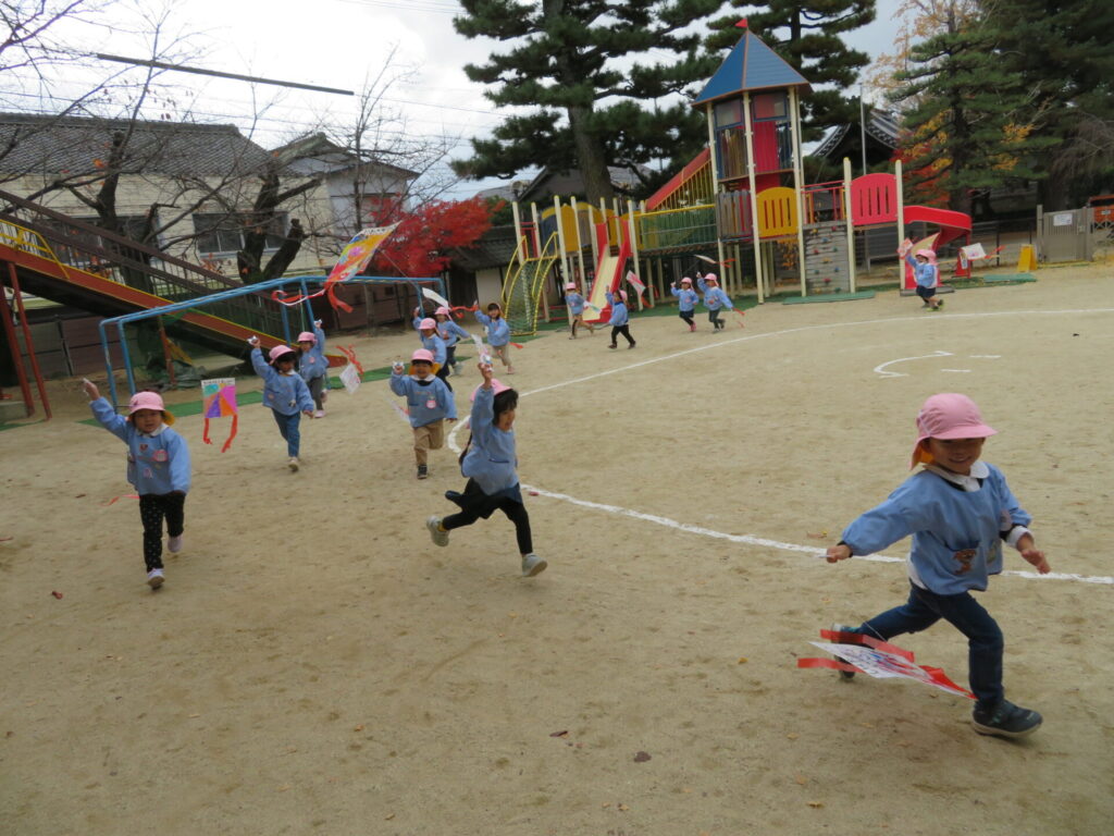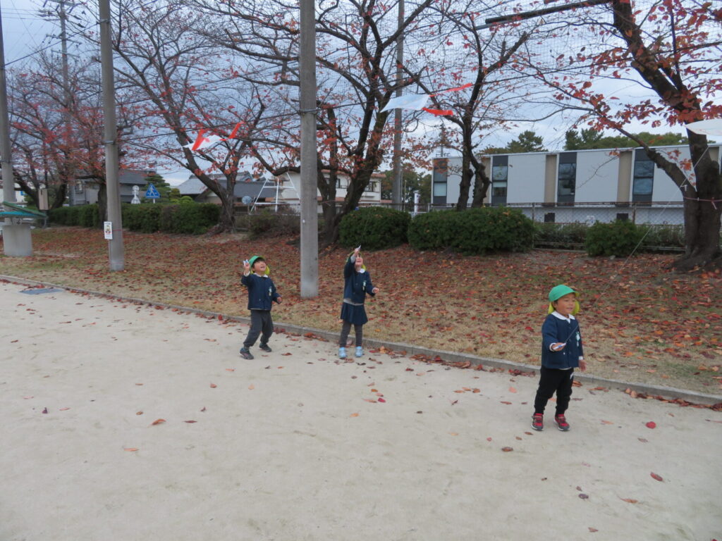 自分で作った凧をあげて、とても嬉しそうでした😃