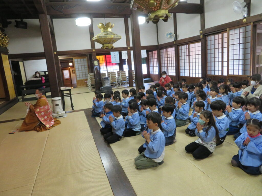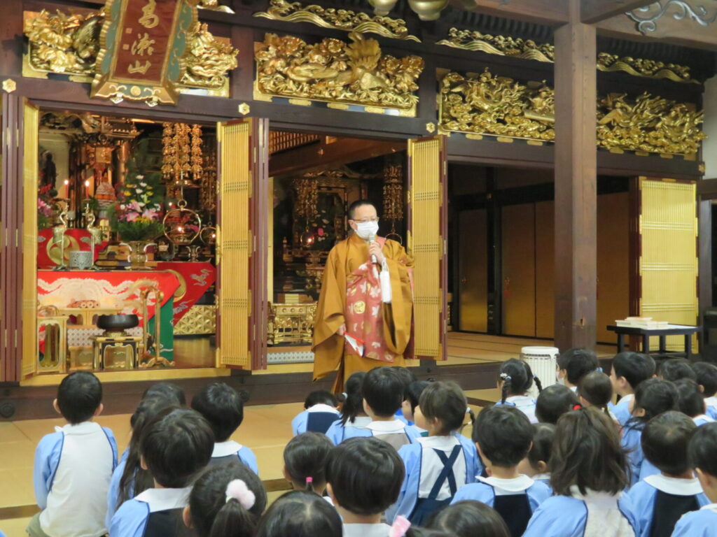 本堂で園長先生のお話を聞きました。