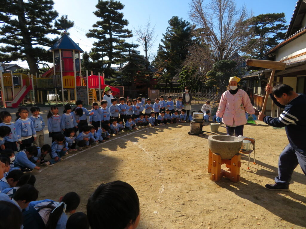 大きい組さんはもちつきを体験しました♪