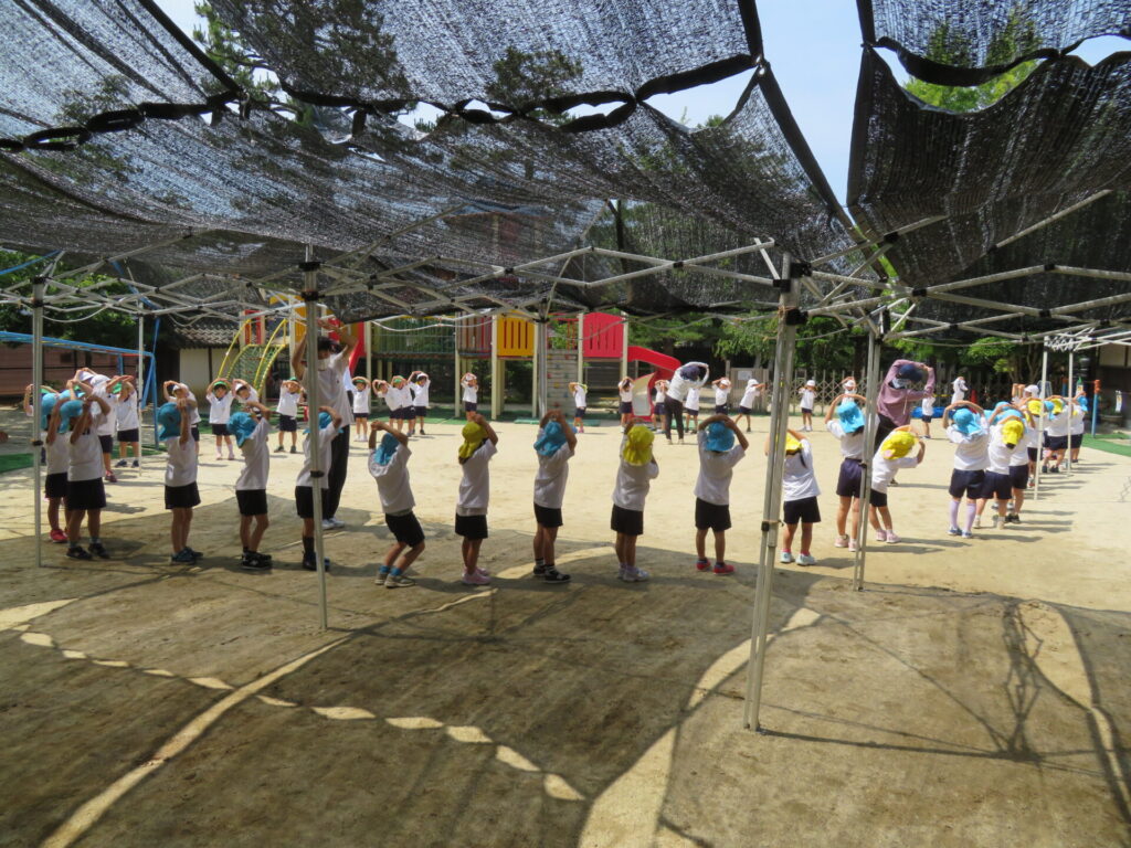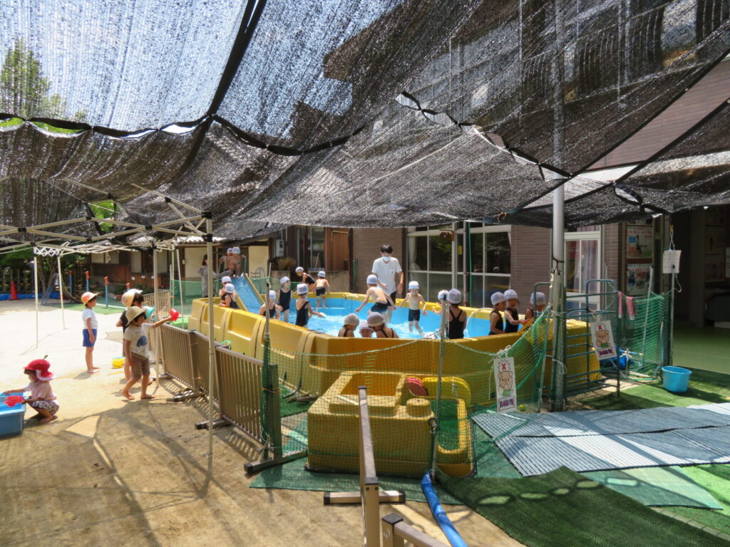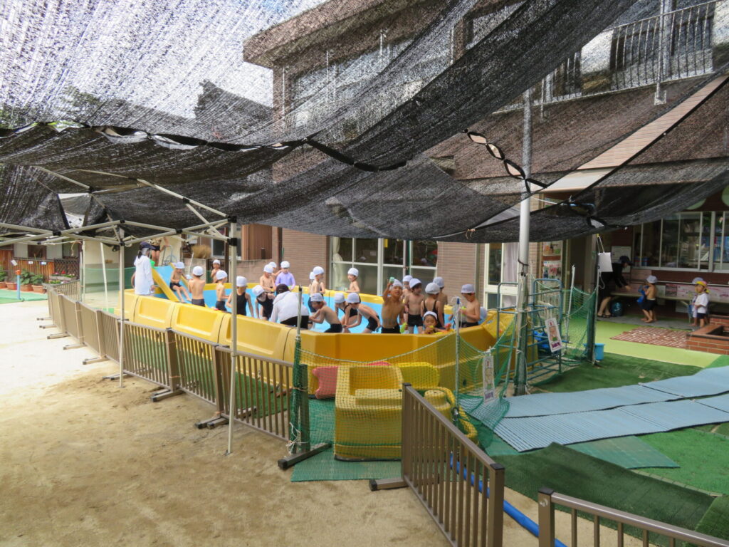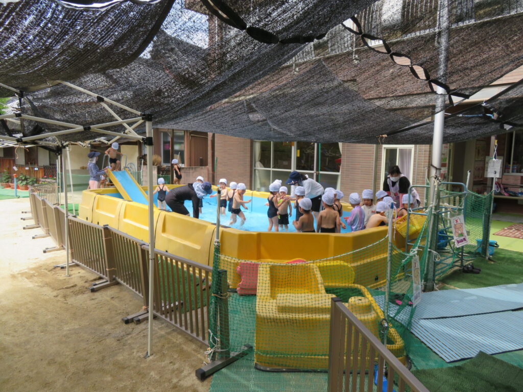 プールでのお約束のお話を聞きました。朝から😍わくわく😍していたみんな。