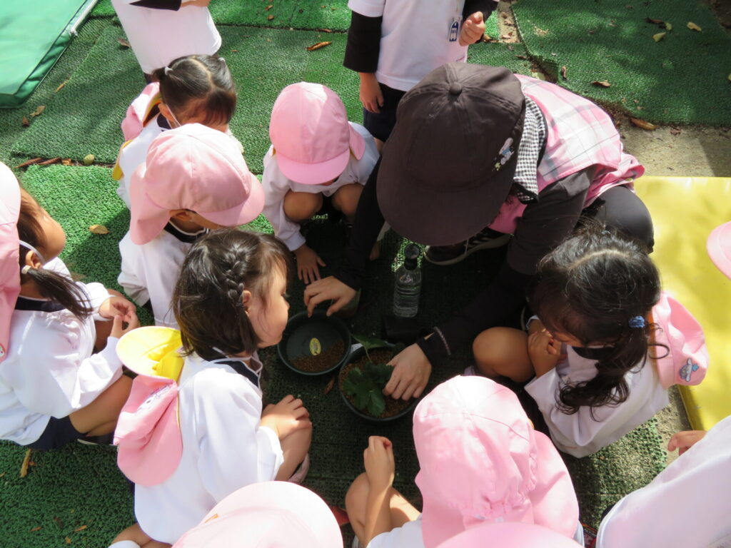 クラス毎にいちごの苗を植えて、「おおきくなぁ~れ!!」とパワーを送りました🍓
