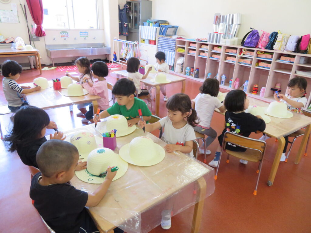 年少さんは麦わら帽子にお絵描きしました👒