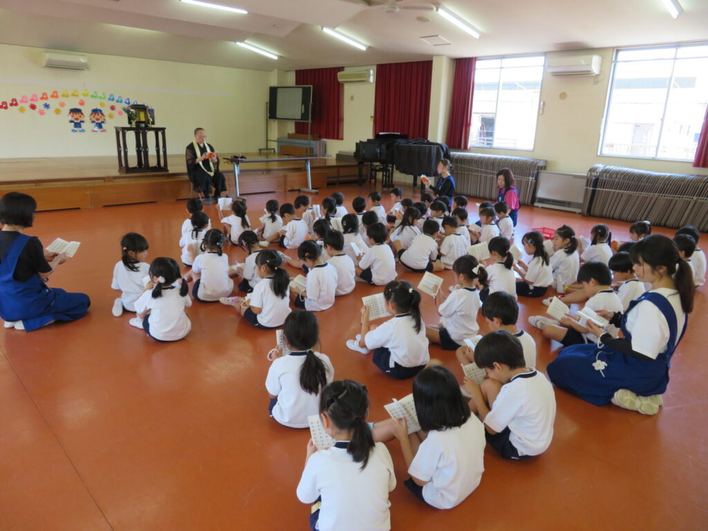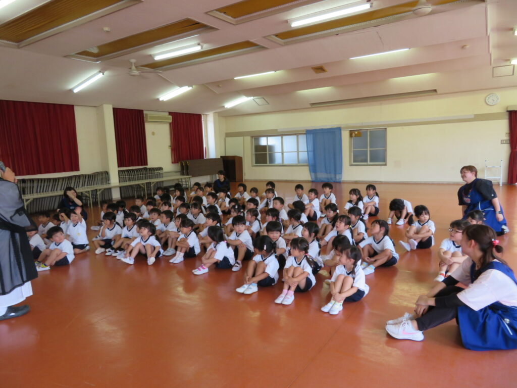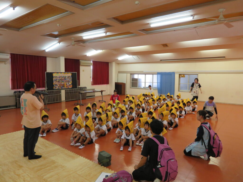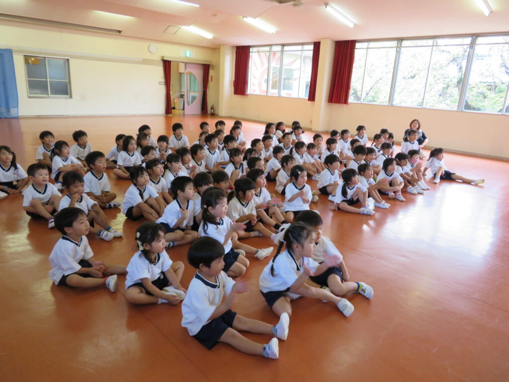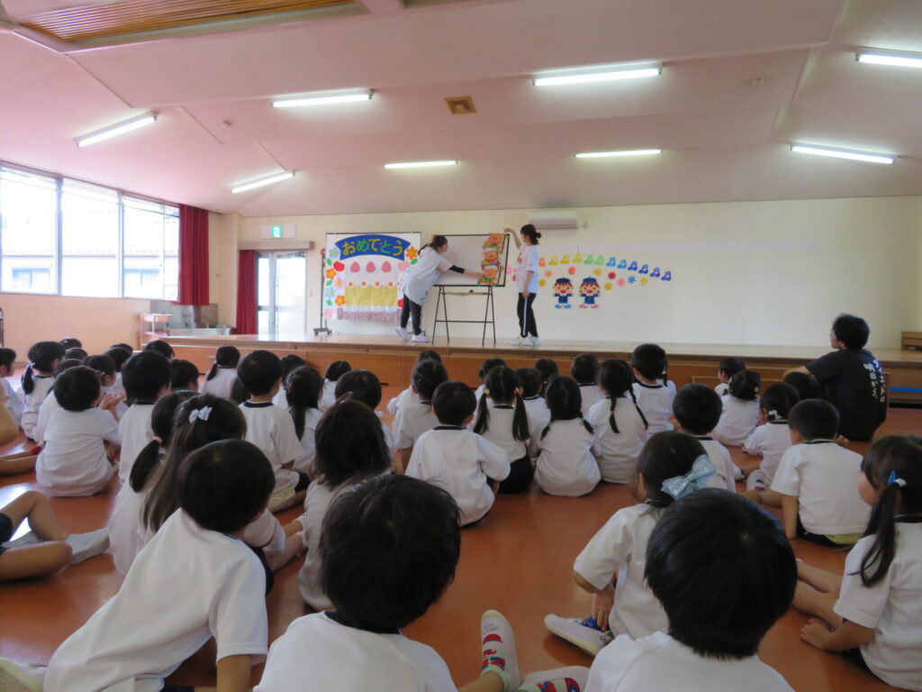 お祝いの後は、ぶたさんのお話のペープサートでかけっこのルールを楽しく学びました☆