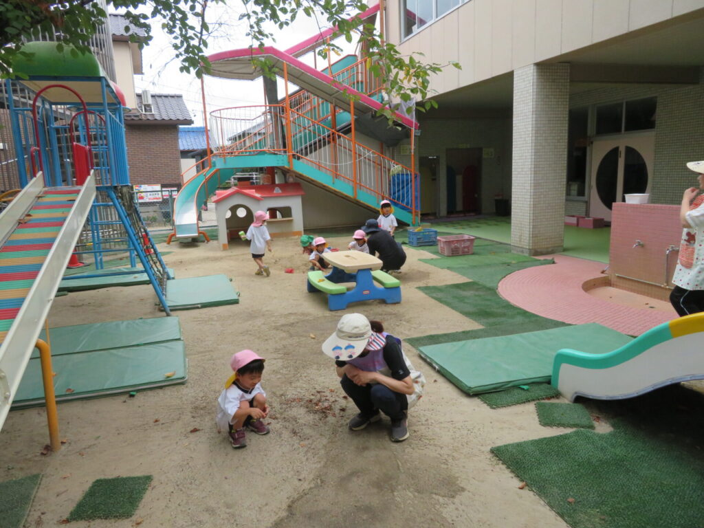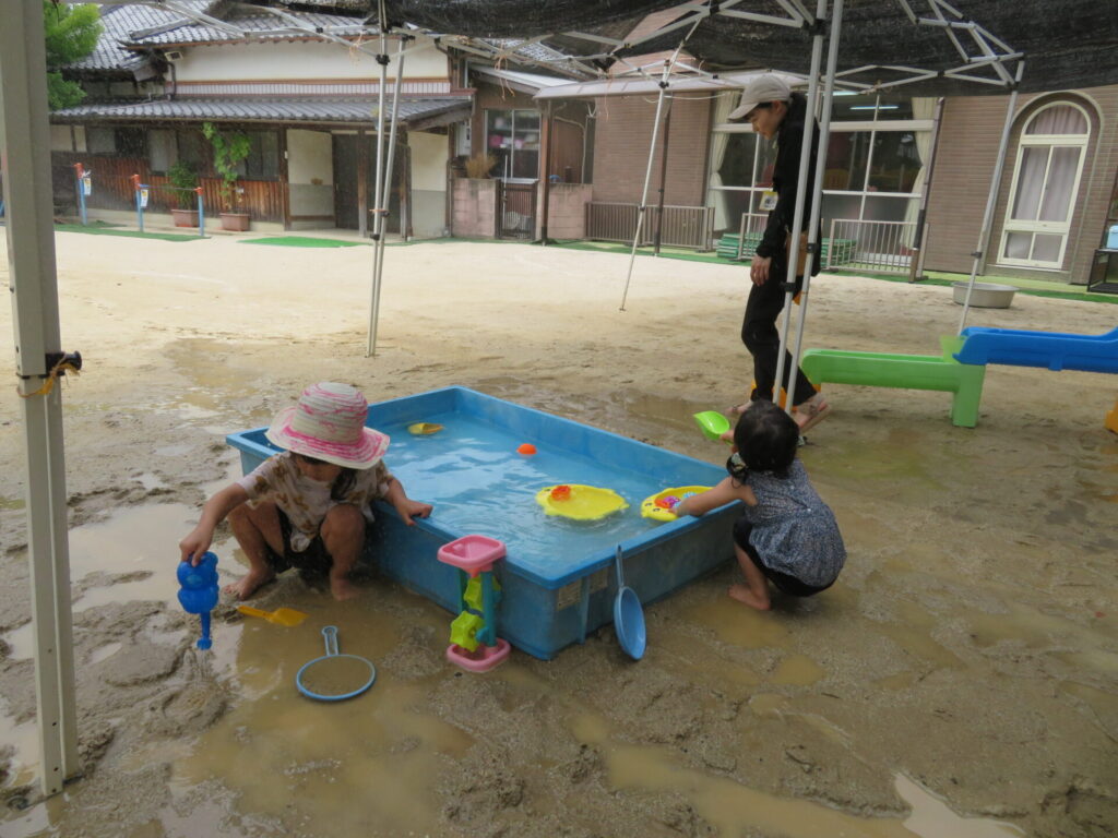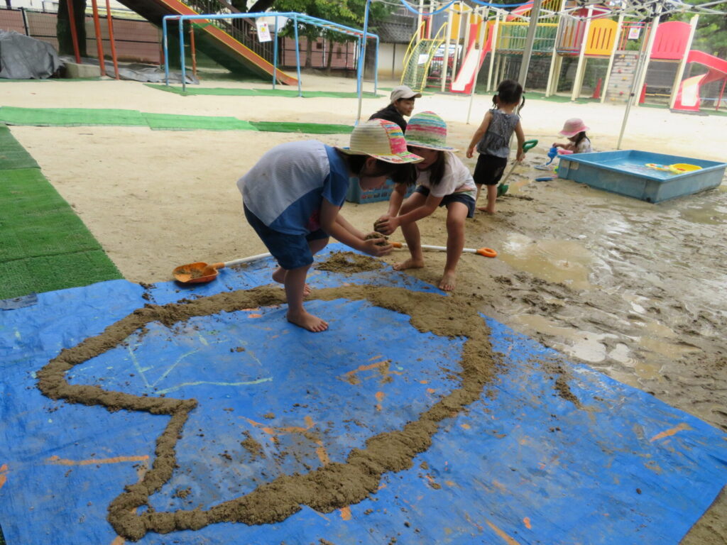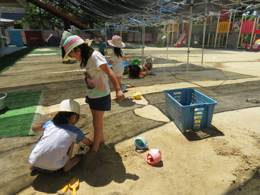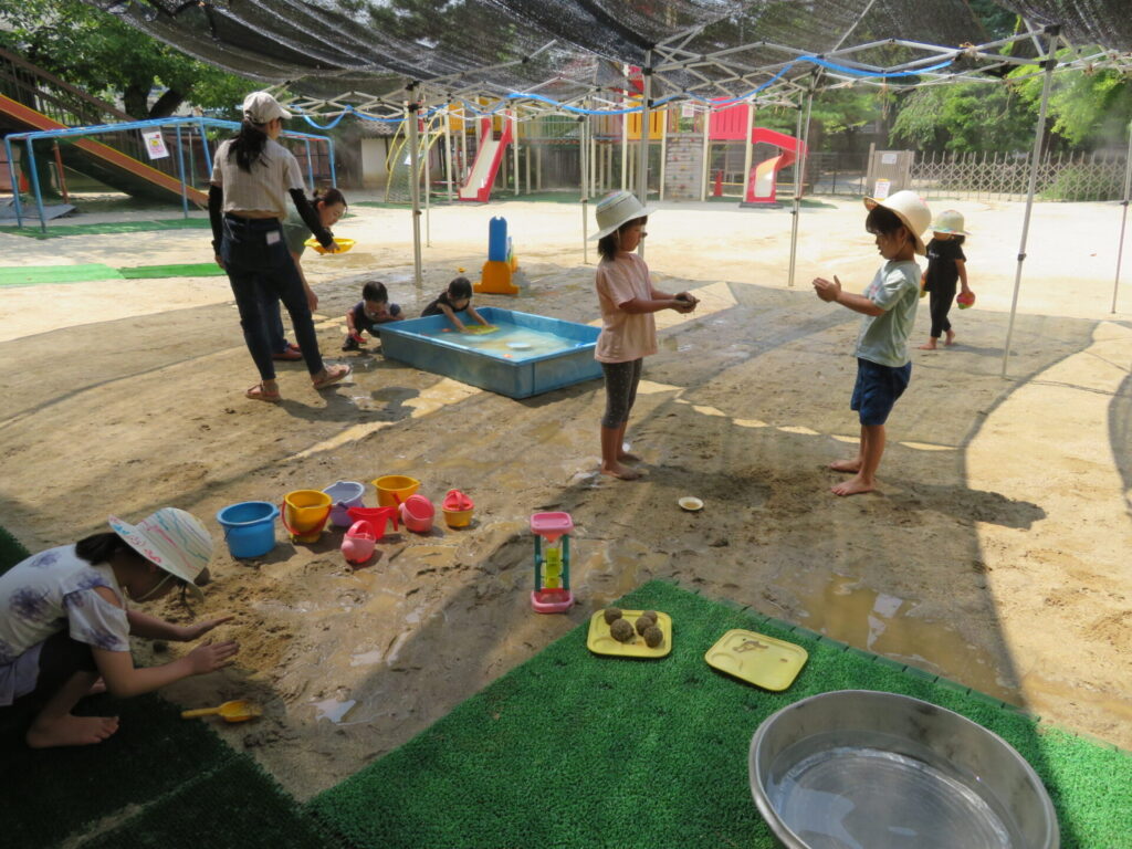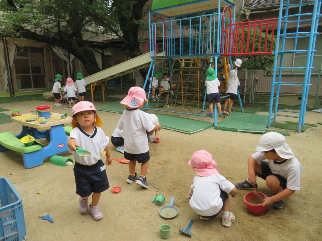 暑い日がまだ続いています。1学期に引き続き、気持ち良く泥んこあそび楽しんでいます😃