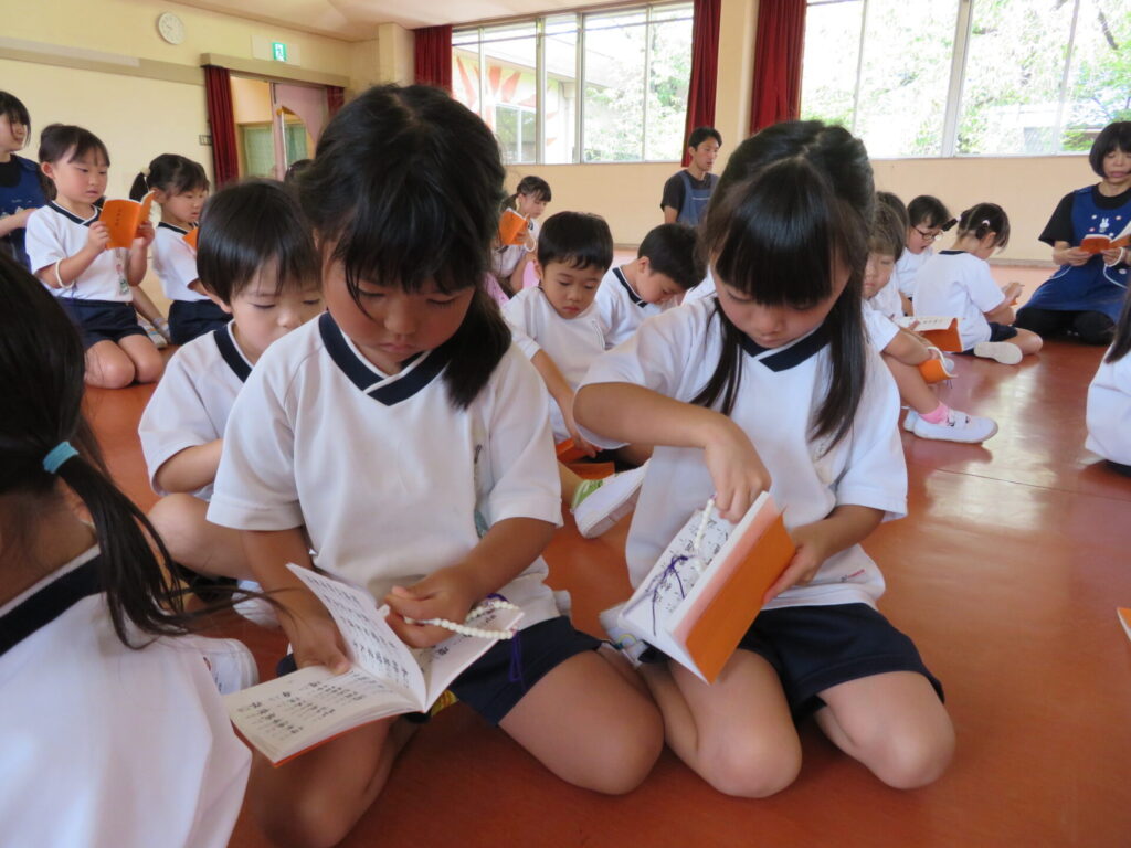 地震の訓練です。しっかりお話を聞いて避難出来ました。
