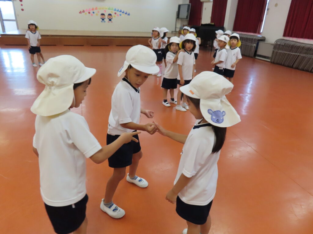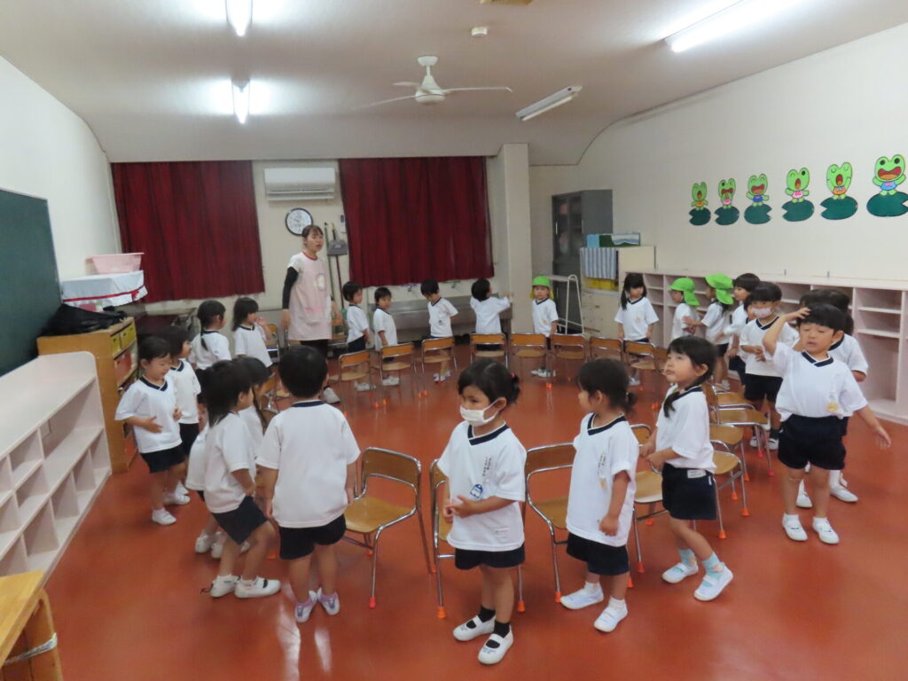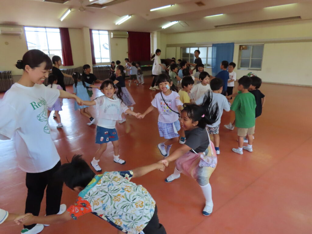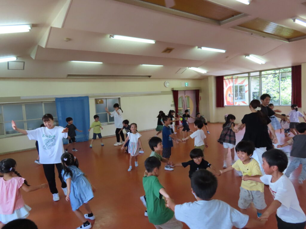 山中先生と一緒に、盆踊りの練習をしました♪みんなとても元気に踊ってくれます😊