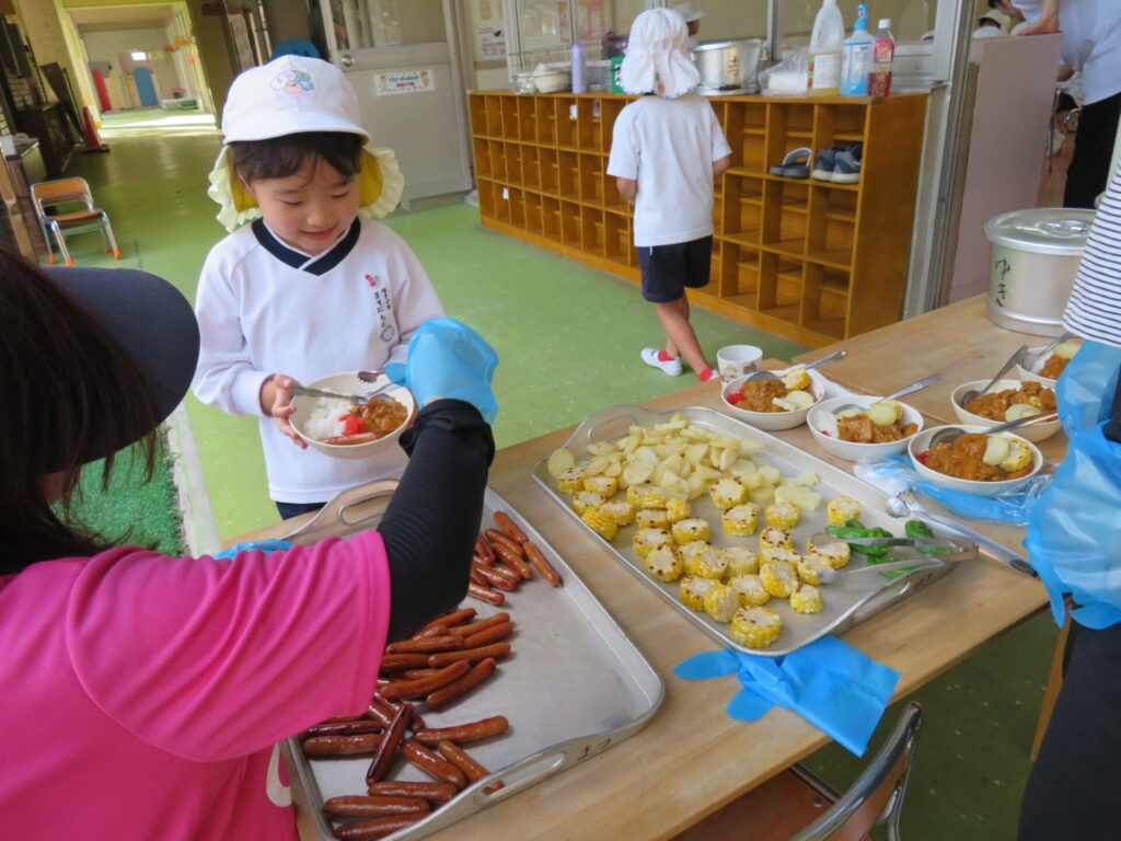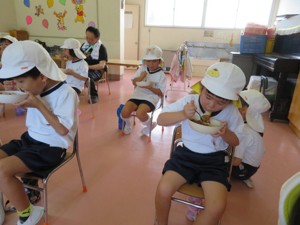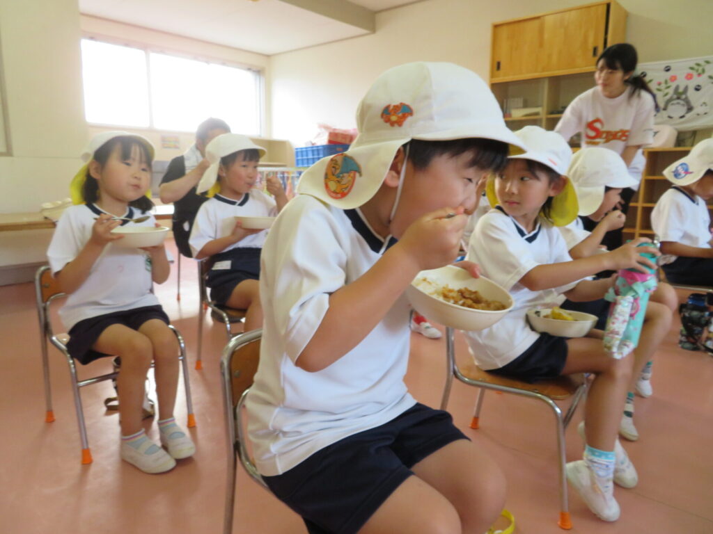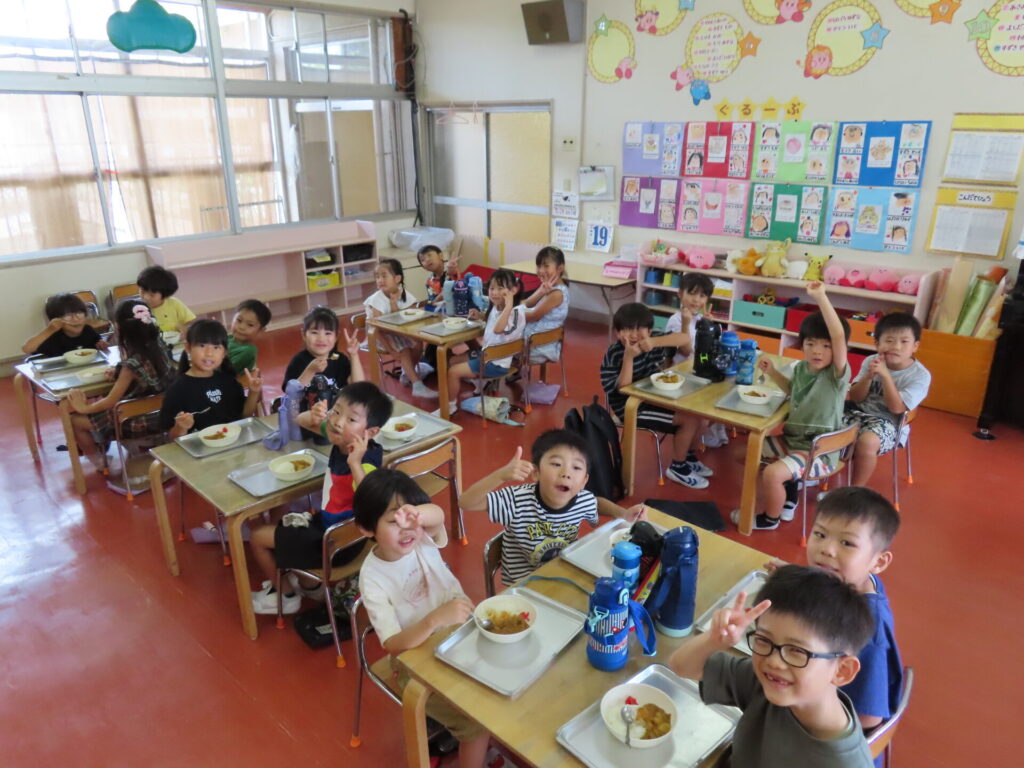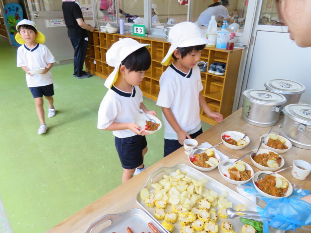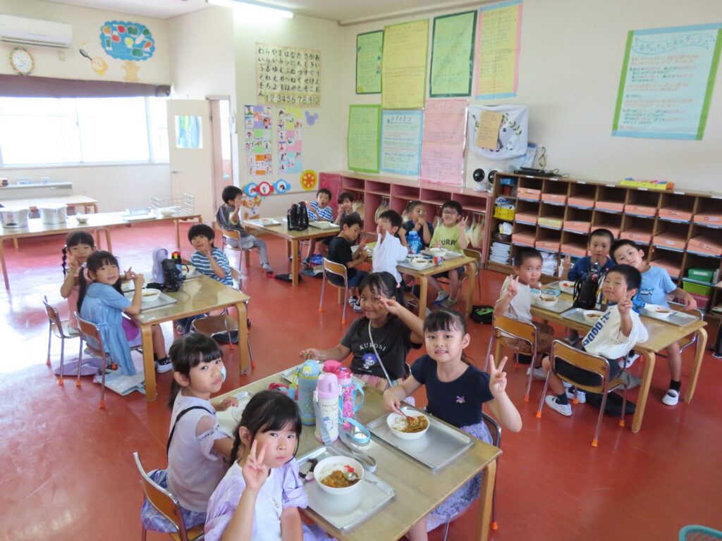 ともえ幼稚園卒園の新1年生を招いて、カレー会を行いました😄