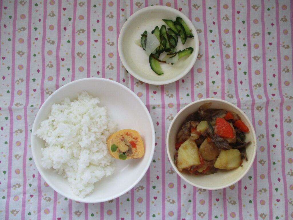 給食の肉じゃがは甘めの味つけでご飯が進みます。