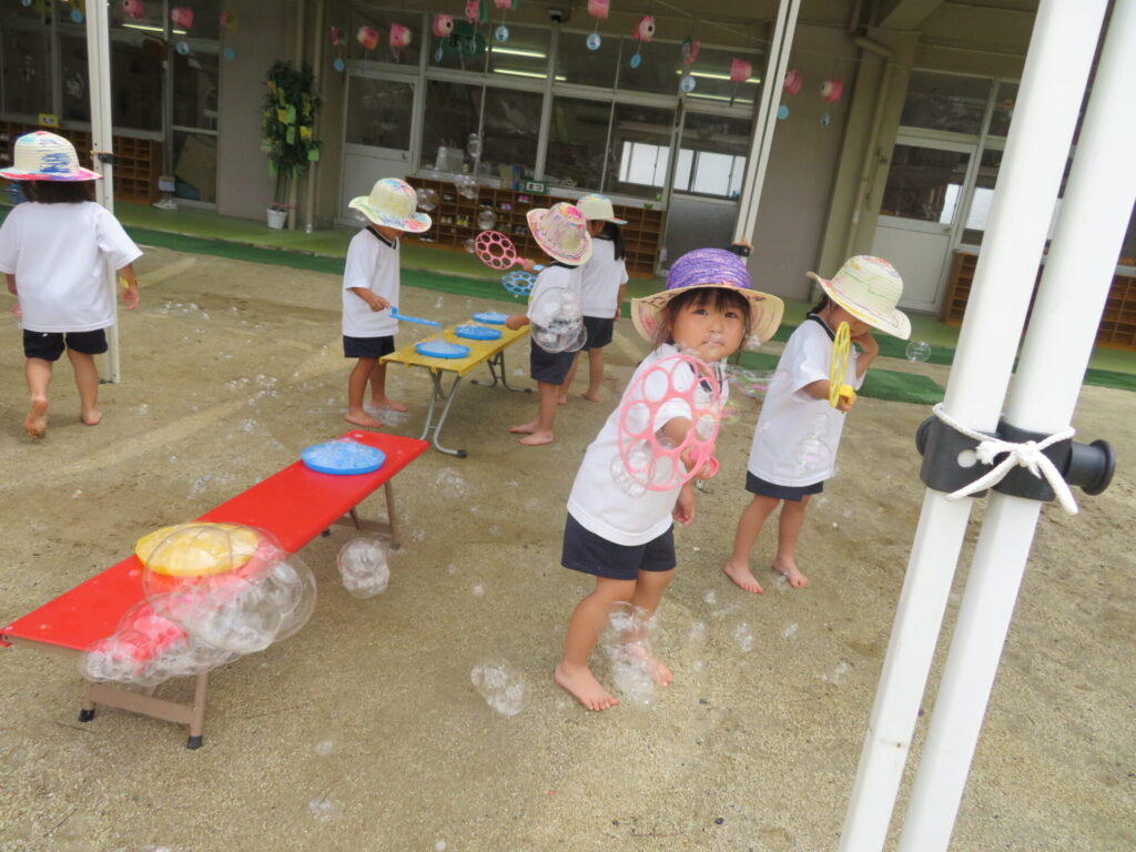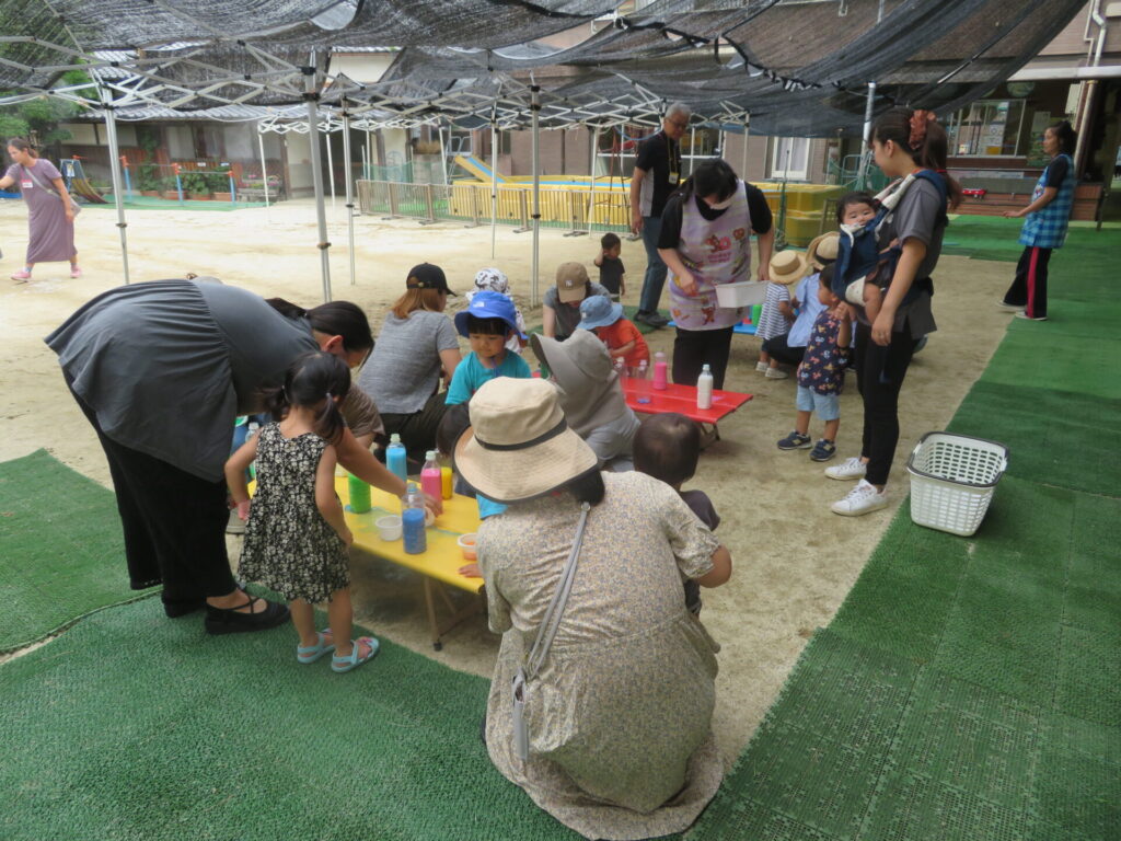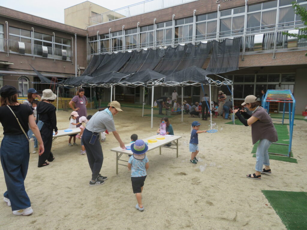 「しゃぼん玉あそび・色水あそび」にたくさんのお友だちが遊びに来てくれました。