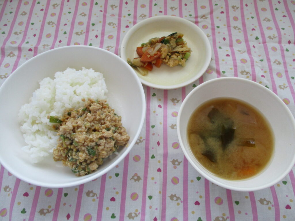 <5月13日の献立>スタミナ納豆丼・フーチャンプルー・みそ汁