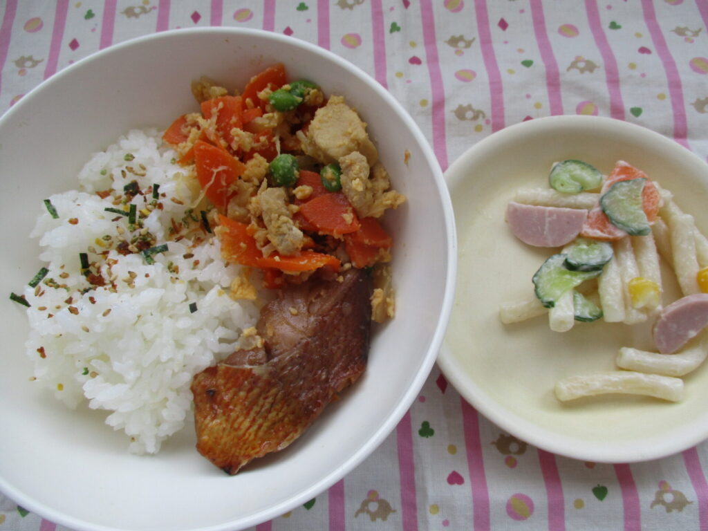 今日は鮭のオーロラソースあえでした。