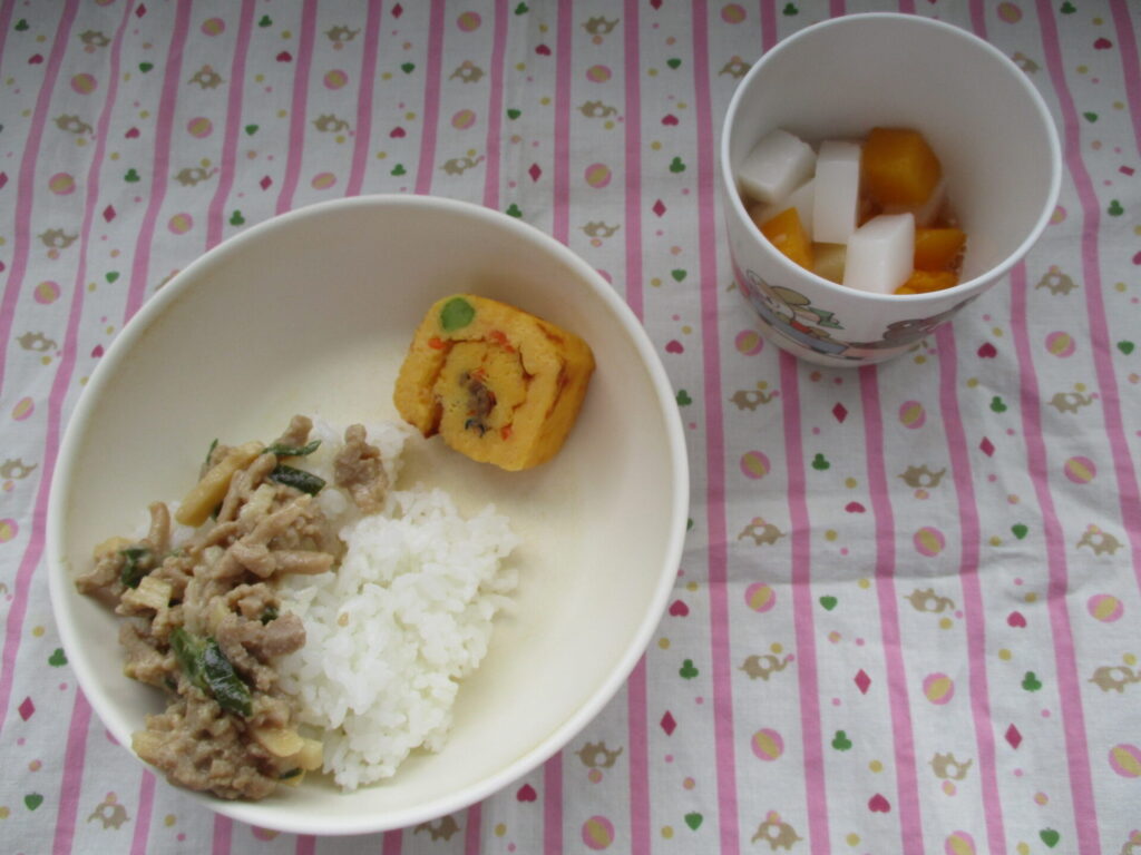 今日の給食は、野菜がたくさん入ったプルコギ丼です!