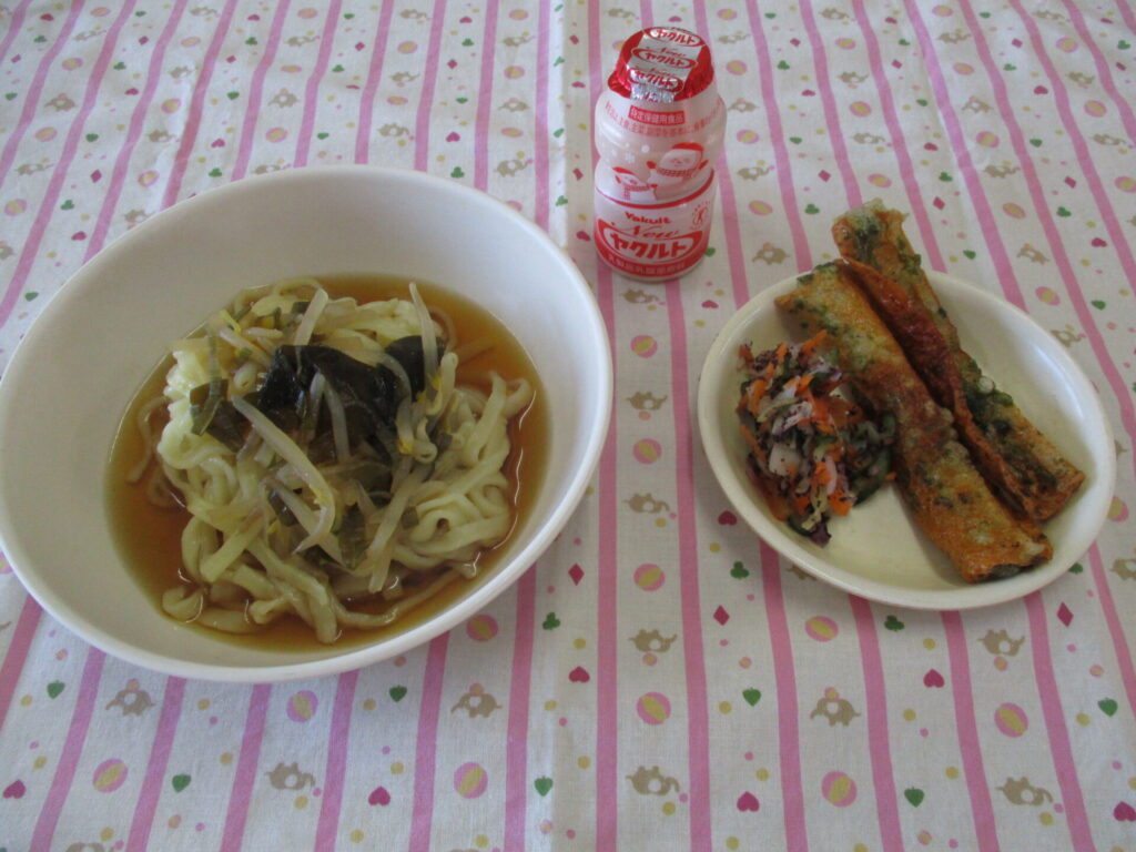 <今日の献立>しょうゆラーメン・ちくわの磯辺揚げ・キャベツのゆかり和え