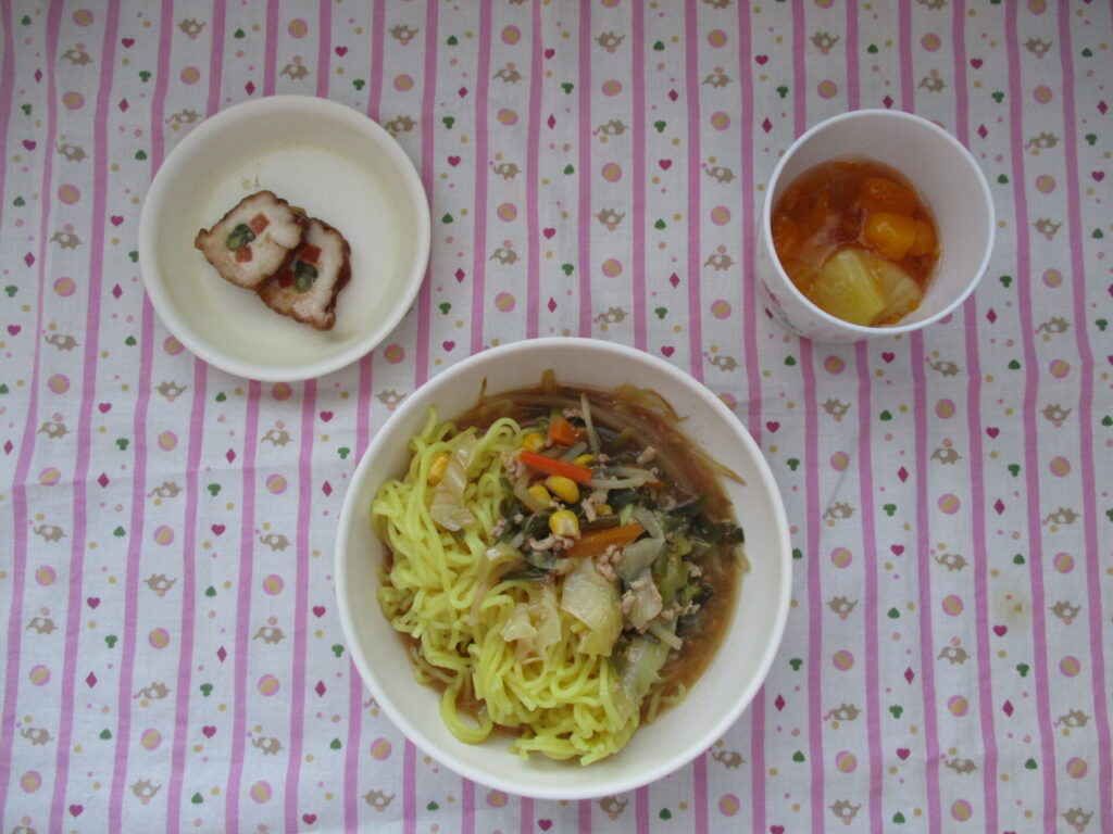 今日の献立☆味噌ラーメン、チキン二色巻き、フルーツゼリー