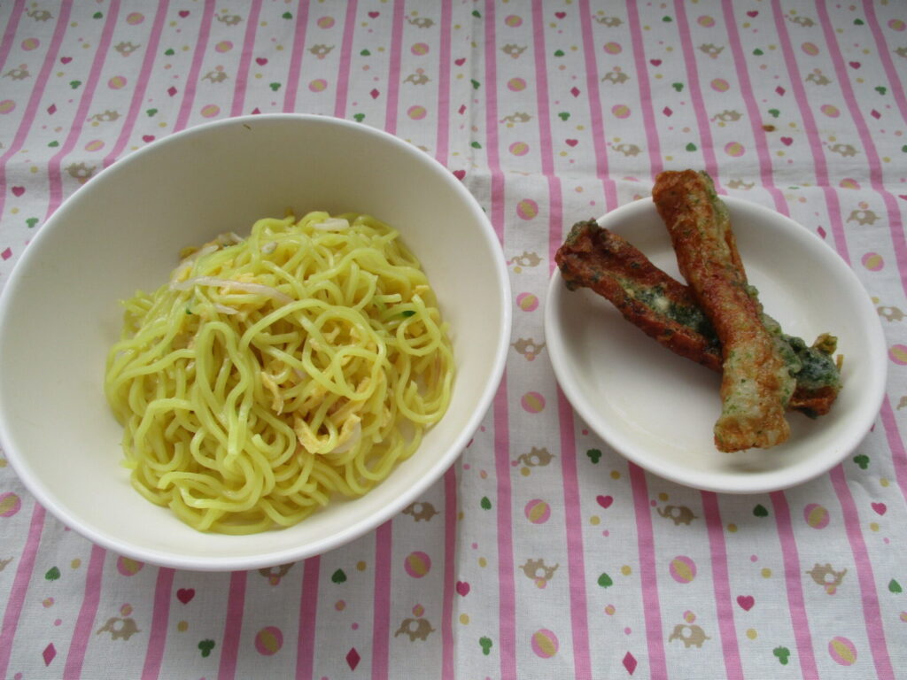 <今日の献立>冷やし中華・ちくわの磯辺揚げ