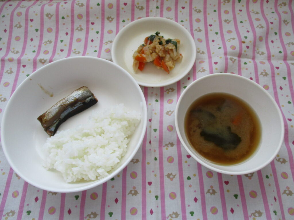 <今日の献立>ごはん・さんまのおかか煮・フーチャンプルー・みそ汁