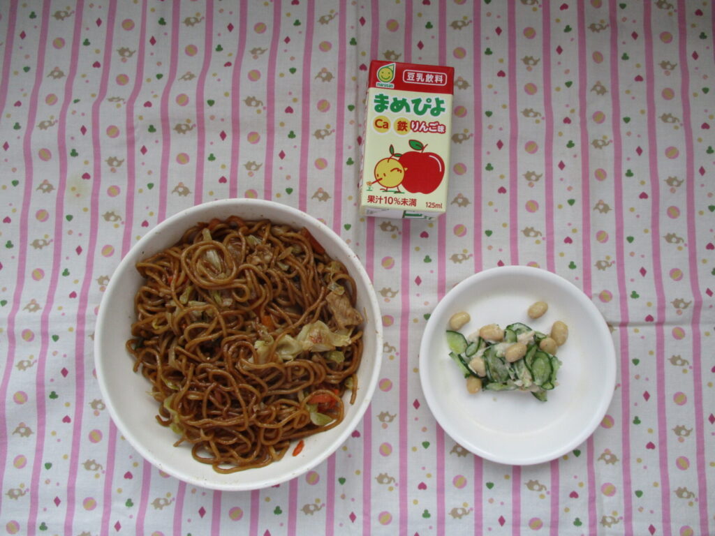 今日の給食は、焼きそばです。