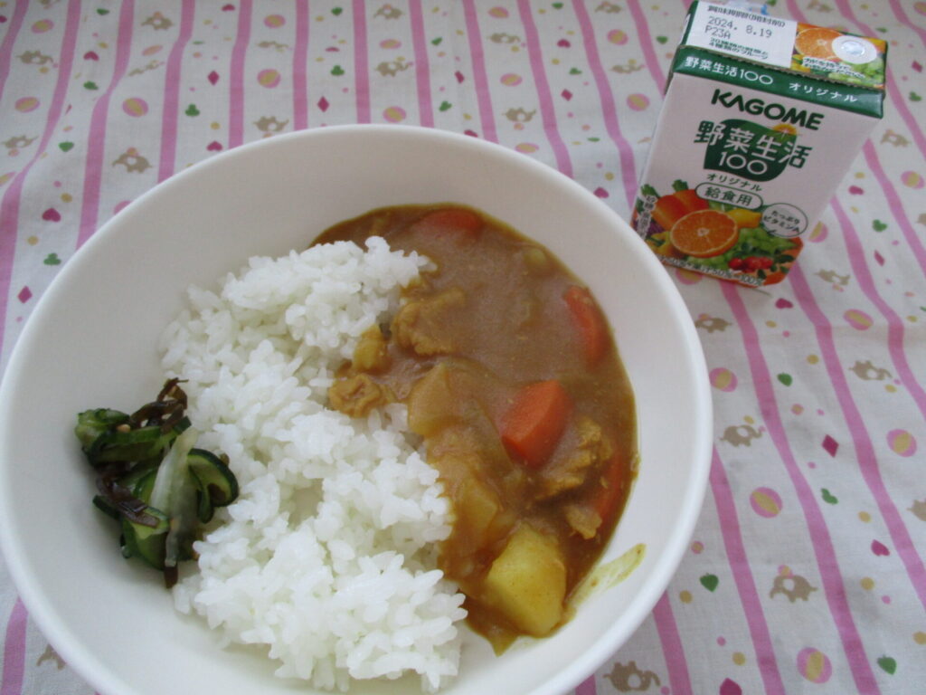 <今日の給食>カレーライス・大根ときゅうりの浅漬け・野菜生活