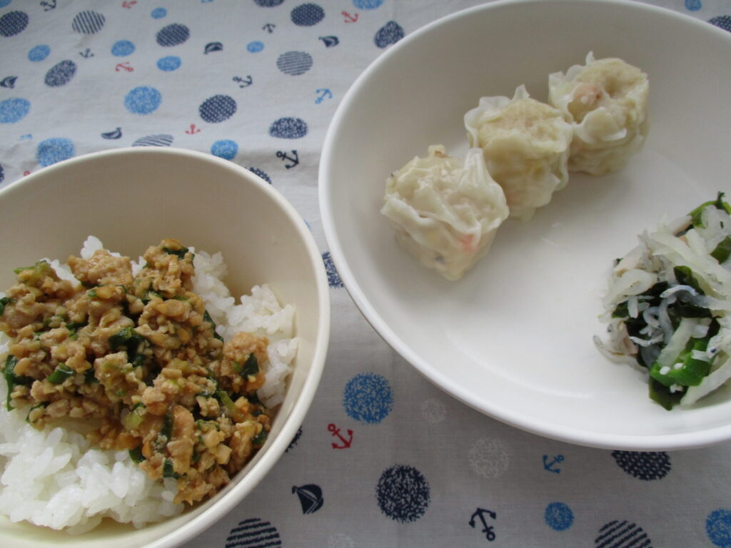 <今日の献立>スタミナ納豆丼・しゅうまい・酢の物