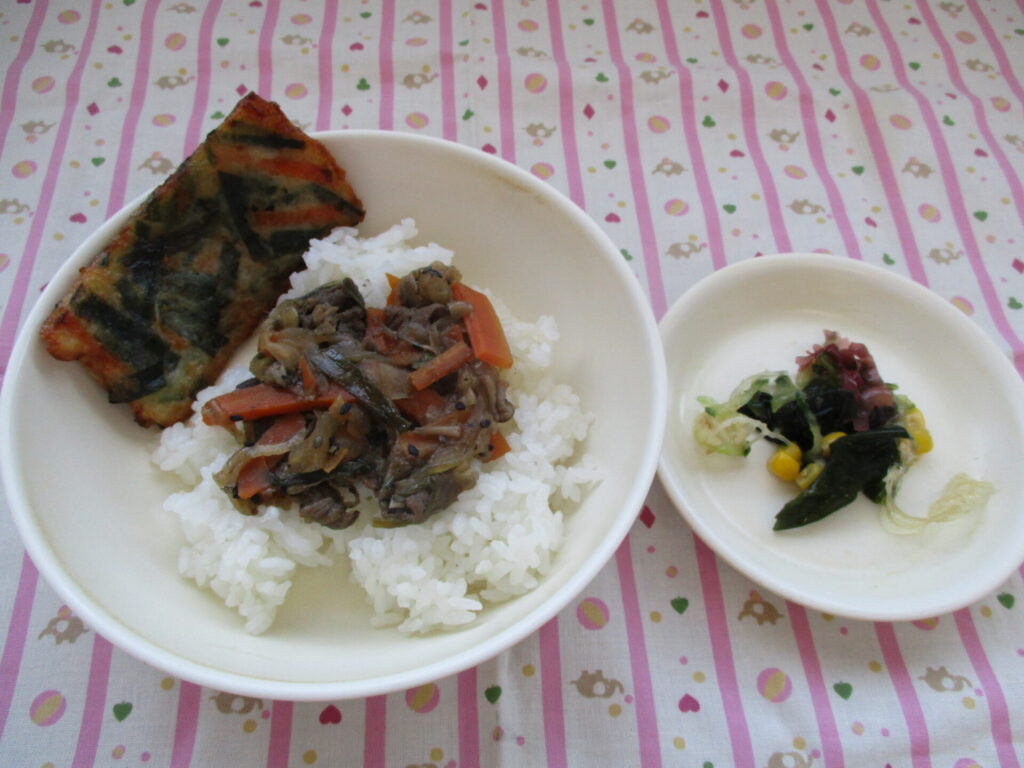 今日の献立>プルコギ丼・海藻サラダ・チヂミ