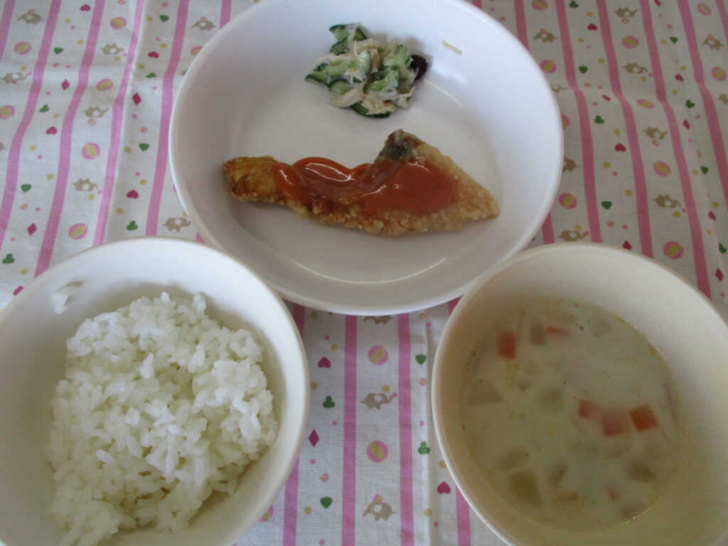 今日は鮭のオーロラソース和えでした!