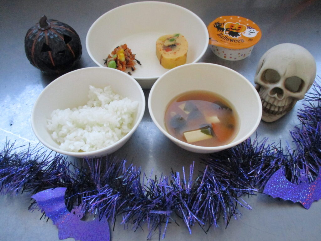 明日はお弁当ですので、ハロウィンデザートを本日提供しました。