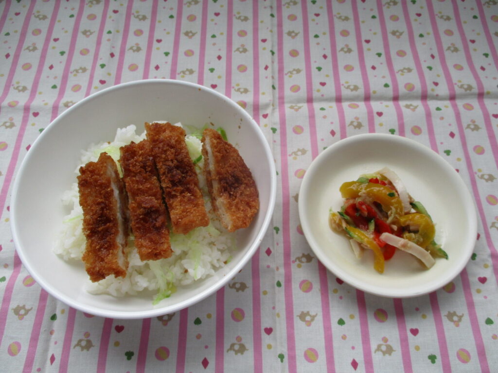 <今日の献立>ソースカツ丼・野菜のマリネ