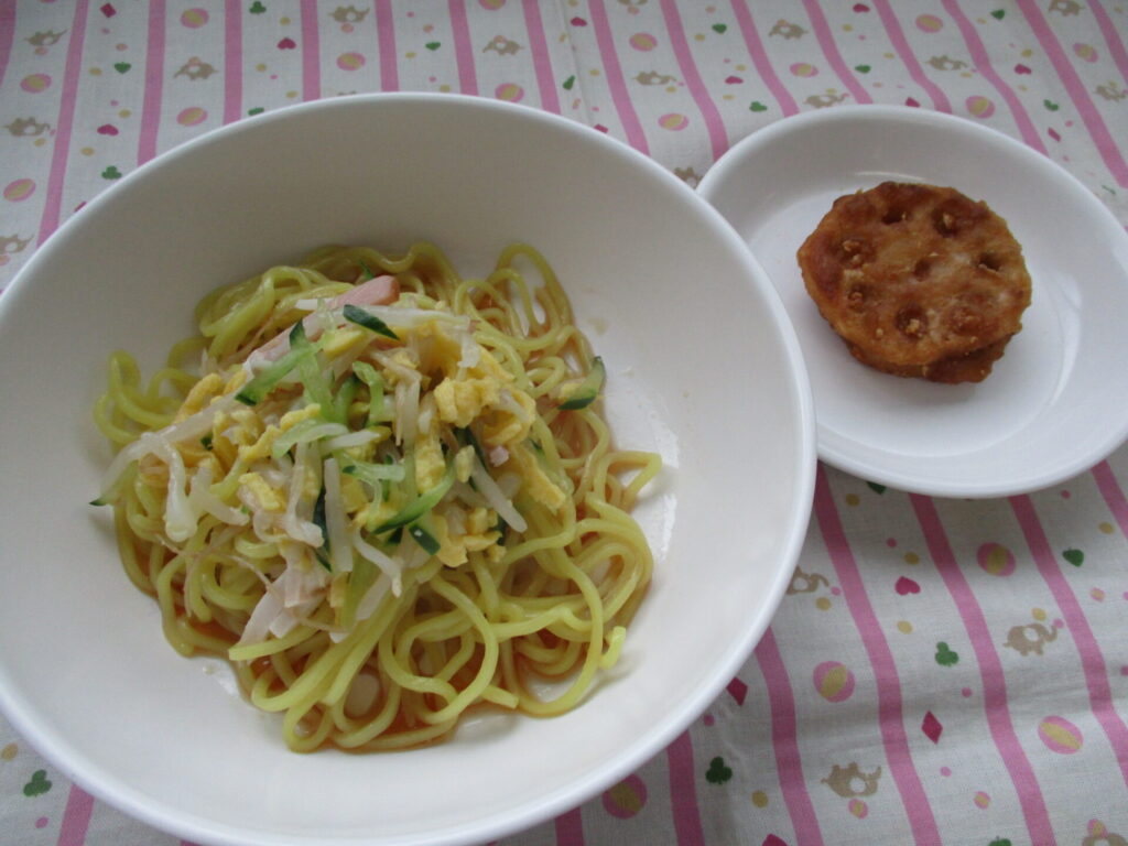 <今日の献立>冷やし中華・れんこんの挟み揚げ