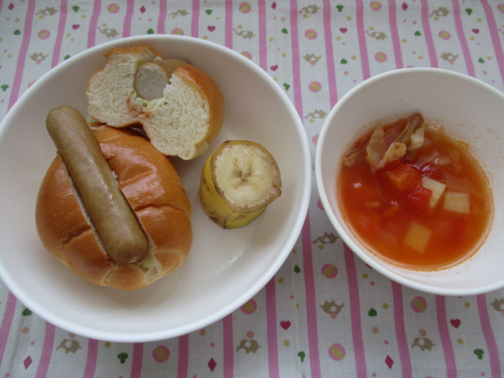 給食の給食☆ホットドッグ ミネストローネスープ バナナ