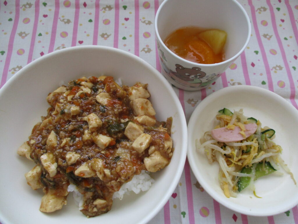 <今日の給食>麻婆豆腐・もやしの中華和え・フルーツミックスゼリー