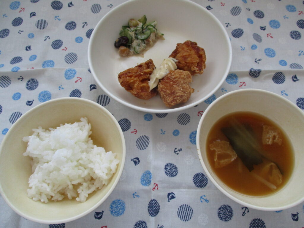 チキン南蛮 きゅうりとささみのサラダ みそ汁 ごはん