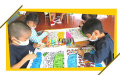 毎月の製作・歌・表現遊びなどを楽しみながら豊かな感性や自己肯定感を育みます。また、集大成として運動会や作品展、生活発表会などを保護者の方にも見ていただき、 達成感や自信を培うことができるよう、支えていきます。